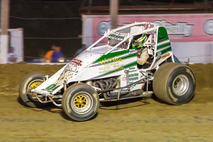 Running sixth was eighteenth-starting Joe B. Miller in the Matt McGarry Motorsports MRP Chassis with Gaerte power earning him the Indy Race Parts Hard Charger. Terry Richards was seventh as he was followed by Chris Parkinson. Rounding out the top ten were twentieth-starting Wesley Smith and Craig Carroll.. Heat races for the 32 car field were won by Davis, Kreisel, TJ Artz, and Burks while Ty Hulsey won the B-Main. Josh Stephens climbed the right rear of Ryan Kent in heat race number three sending the Buckner, MO driver into a series of wild flips in turns three and four. Stephens climbed from his car but was later transported to a local hospital for further evaluation.