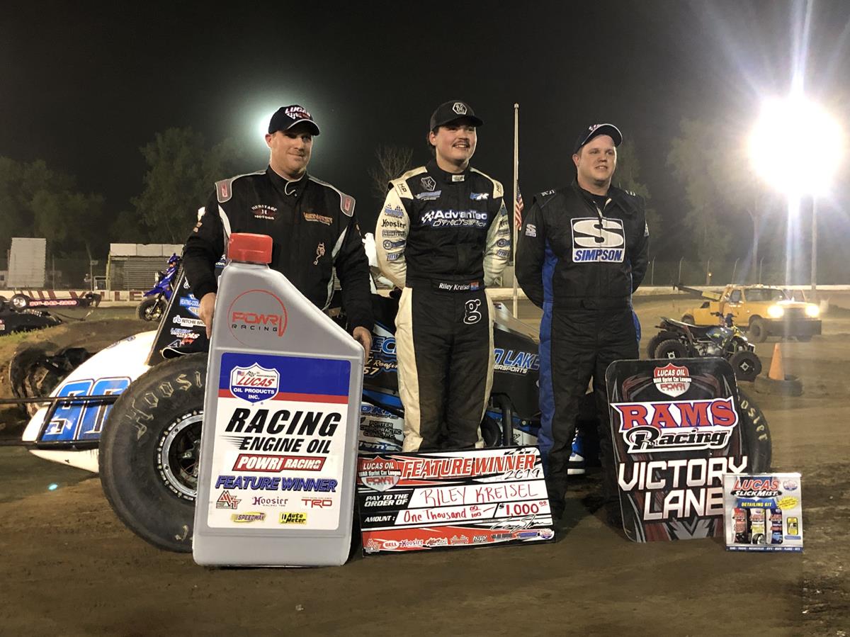 GRAIN VALLEY, MO. (June 7, 2019) – Scoring his fourth-career victory with POWRi Lucas Oil WAR Sprint League on Friday night, Riley Kreisel of Warsaw, Missouri maneuvered through a group of elite contenders and rose at the top, completing an impressive sixth-to-first drive with some rim-riding fun and several sliders along the way.