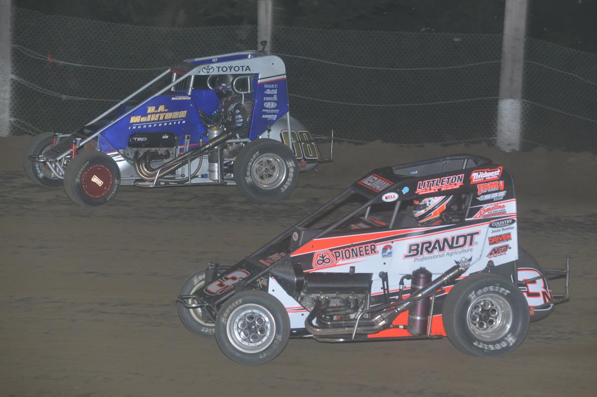 Driving around Neuman’s slidejob effort in turn one, McIntosh slapped it off the curb and drove away to his first-career POWRi Lucas Oil National Midget League victory. A win months-in-the-making, the 16-year old Bixby, Okla. native had finally conquered a POWRi National Midget feature aboard the Dave Mac Motorsports, Drive WFX, Spike/Toyota No. 08. However, even as excited and jubilant the victory lane ceremony was, the emotions were short-lived and soon took a 180.